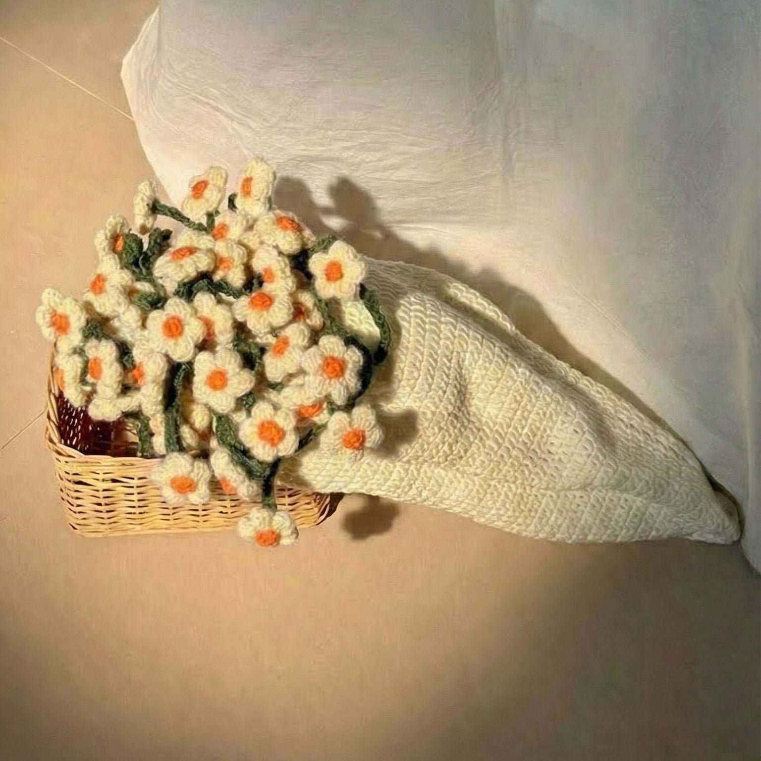 Les fleurs au crochet se révèlent et forment un magnifique bouquet décoratif.