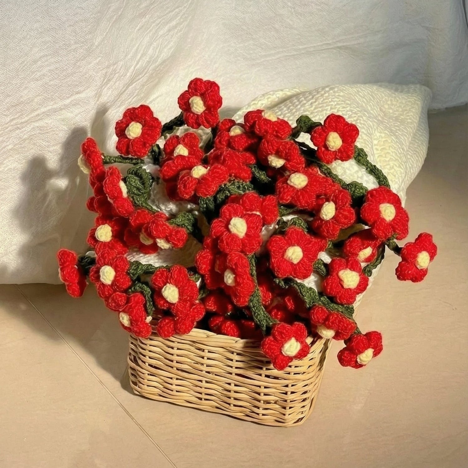 Les fleurs au crochet se révèlent et forment un magnifique bouquet décoratif.